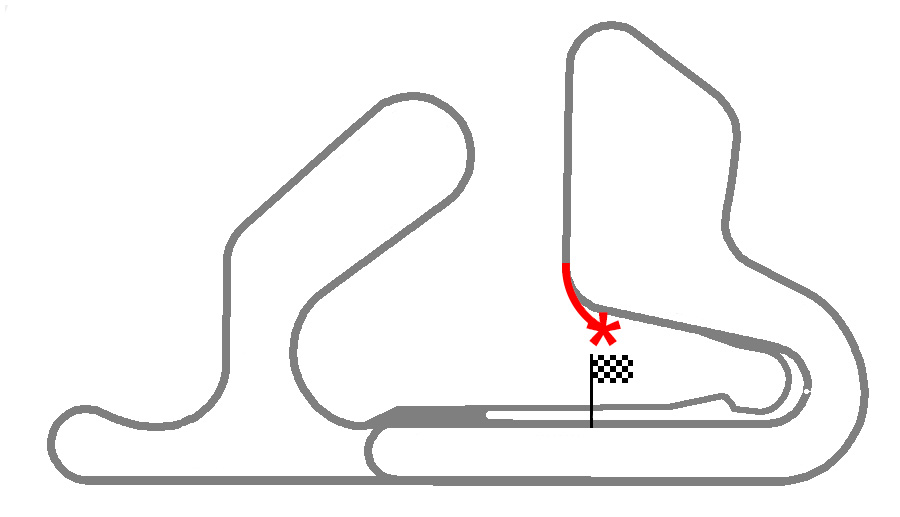 For some reason, on their lap prior to coming into the pits, the computer cars all carry on at unabated speed and don't attempt to slow down for the 1st gear left hander before the pits (please see the image).