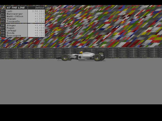 And there goes MacGibbons off the circuit!! He spun off just before the back straight, but unlike Priet he continues with no damage, but he is now last.