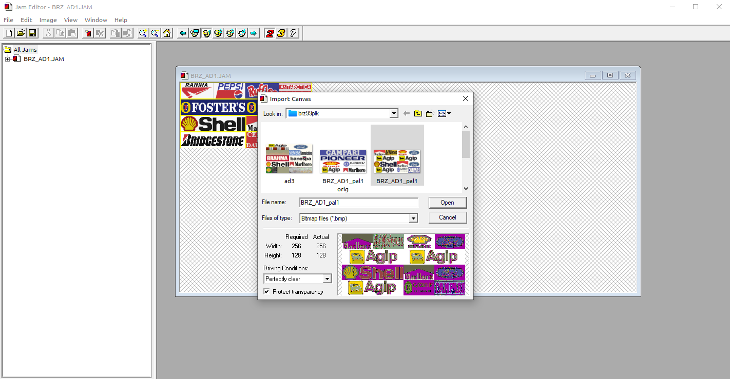 I am mucking around with the jam editor and tried to change the track side logos on a Brazil track. However, once changed and i try to import the canvas, it is all purple (see screenshot).