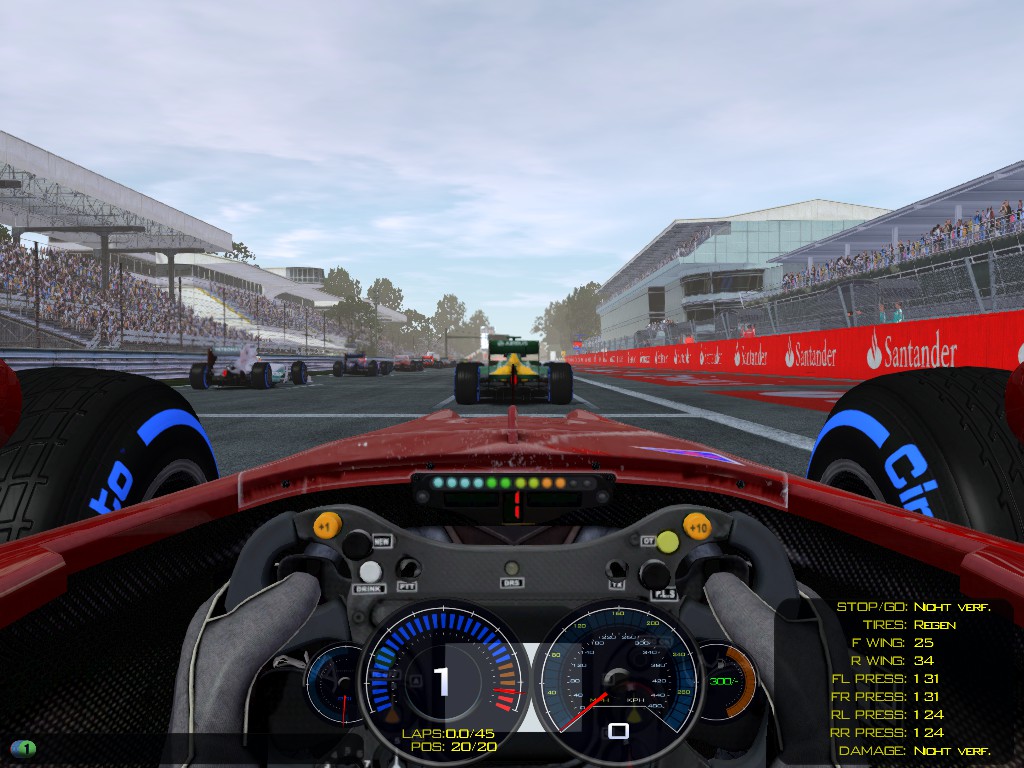Here you can see me, standing in the grid of Monza with a 2013 Ferrari while the track is wet. And believe me - it's hard to handle a F1 car in rFactor 2 while it's wet - it's like driving on ice.