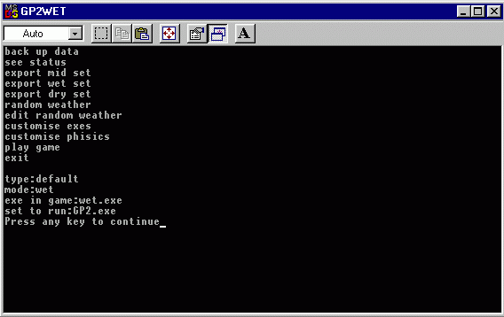 Version: GP2Wet32 v.1[2].00.23a - 13.12.02 THE wet extension for GP2 -