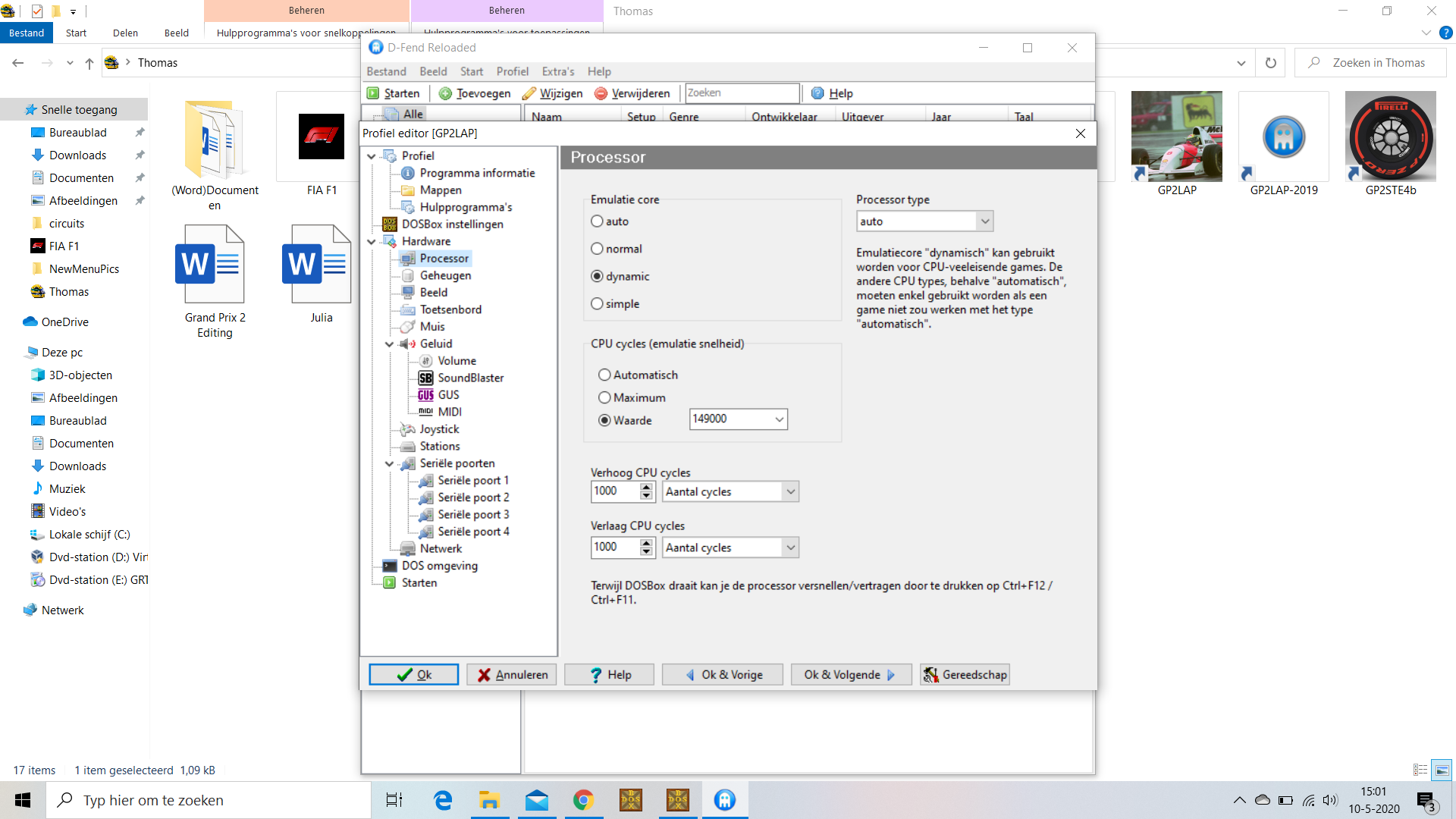 I play GP2 in Dosbox through D-fend and in the attachments you can see some of the settings I use. I have tried Dosbox ECE and it really solves the laptime bug and the game doesn't slow down anymore when driving on high detailed tracks.