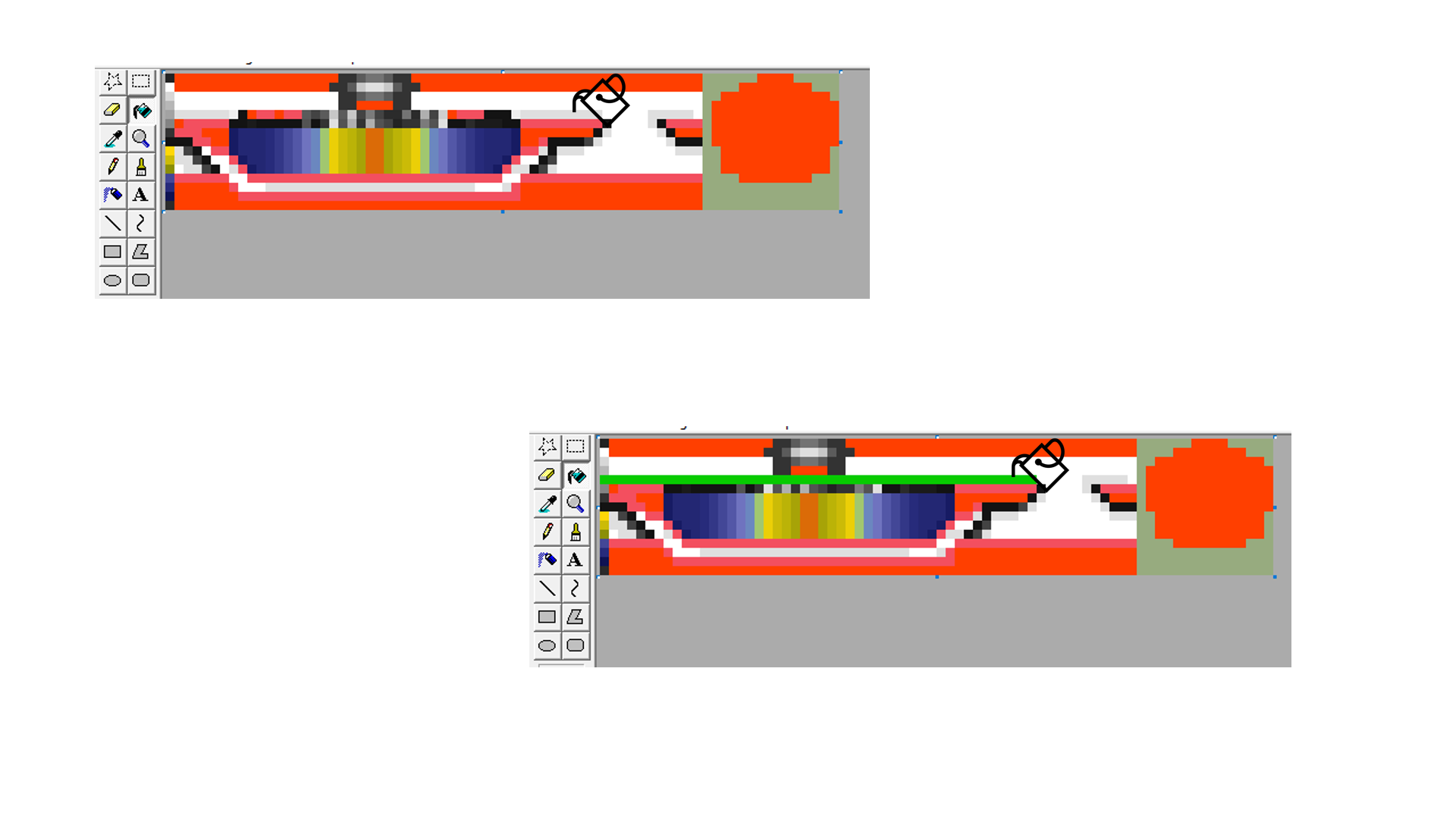 My version of MS Paint has started to produce a really weird issue. When using the bucket tool, it will occasionally fill in the entire line in a leftward direction regardless of whatever variety of colours are on that line.
