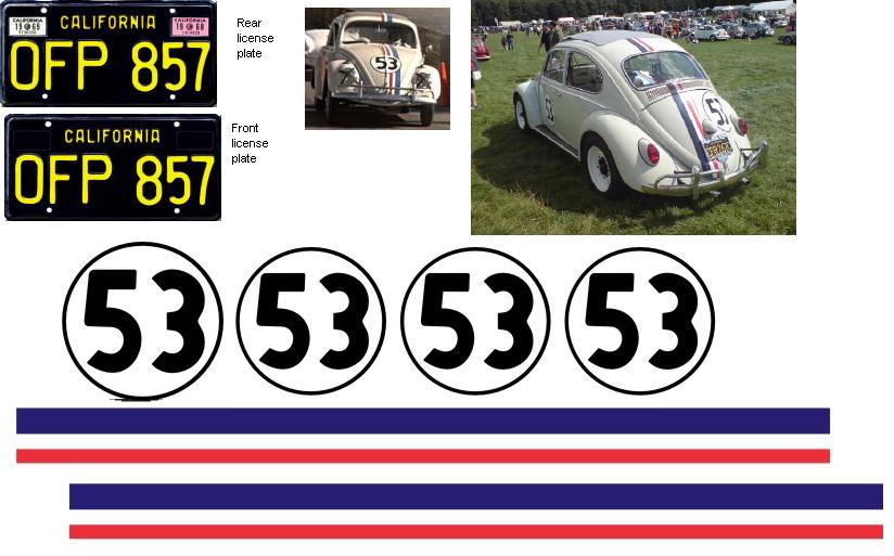 I'm not very good at making road-car bitmpas from scratch, in fact I'm awful at it, as you may have seen from my previous attempt in the last post, so I am leaving my graphics labels for Herbie on here so someone else can do a better job!!